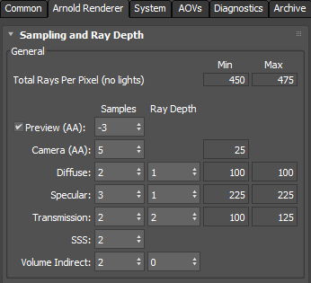 Gürültü neredeyse her zaman yetersiz örneklemeden kaynaklanır, ancak yanlış ışınlar için örneklemeyi artırmak, gürültüyü gidermeye yardımcı olmadan render sürelerini artırabilir. Amaç, gürültüyü en verimli şekilde en aza indirmek için ışınları mümkün olduğunca etkili bir şekilde dağıtmaktır. Bu nedenle, alan derinliği gürültüsünü gidermek için Kamera (AA) örneklemelerinin artırılması gerekiyorsa, render sürelerini yönetilebilir tutmak için diğer ayarların düşürülmesi gerekir. Bununla birlikte, alan derinliği veya hareket bulanıklığı bir sorun değilse, Kamera (AA) örneklemelerini artırmak diğer tüm gürültüyü giderecektir, ancak gereksiz ışınlardan dolayı render sürelerini de yavaşlatacaktır.