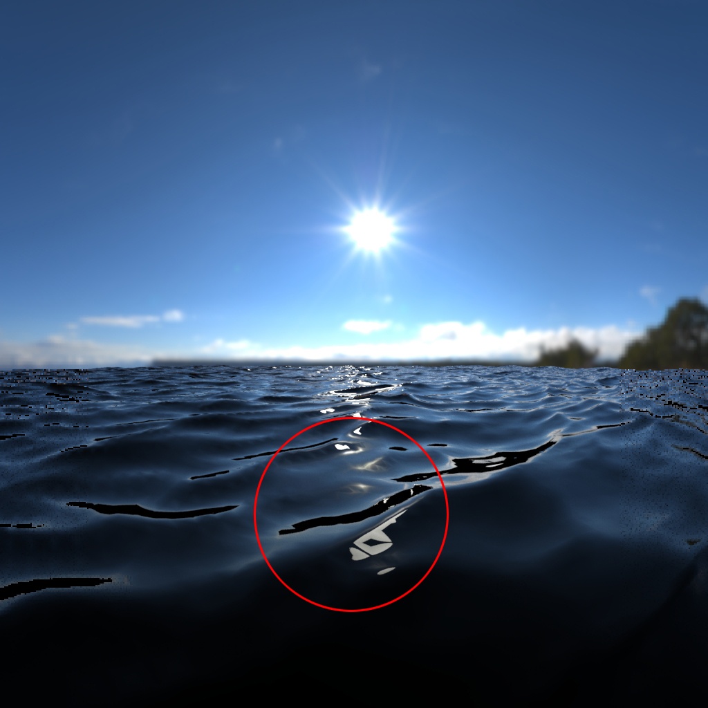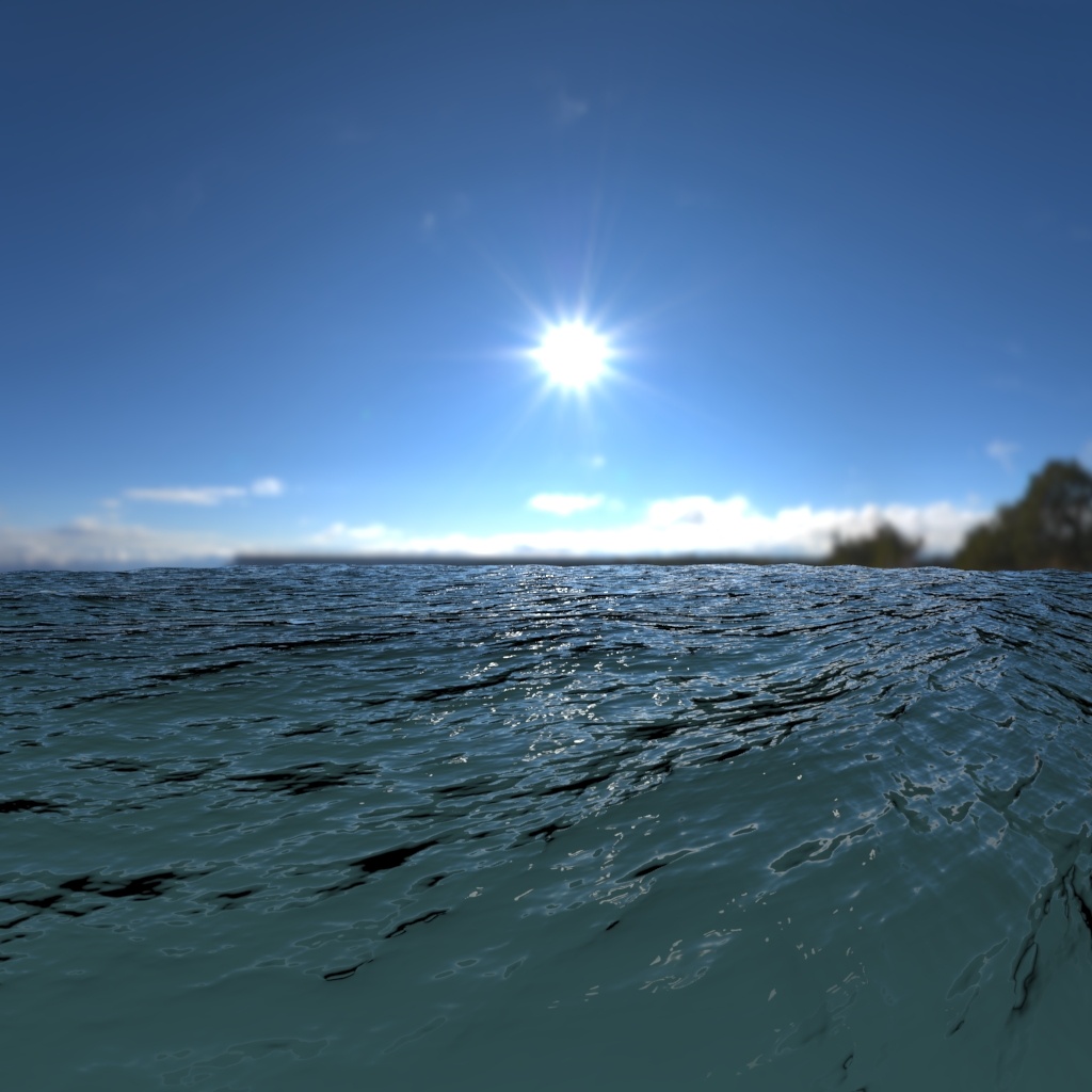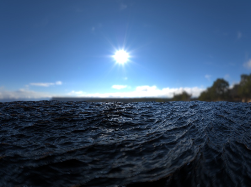Dalga tepelerinin arkasındaki koyu lekeler (kendinden yansıma) , render ayarlarındaki specular_ray_depth değerini artırarak da iyileştirilebilir .