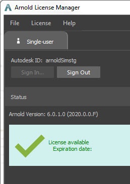 Maya veya 3ds Max kullanıyorsanız, bu uygulamalarda oturum açabilirsiniz , ancak Arnold’u tek kullanıcılı lisanslama için kaydetmek üzere yine de Arnold Lisans Yöneticisi’ni kullanmanız gerekecektir.