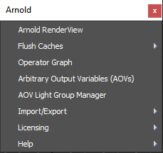 Önbellekleri Temizle menüsü Arnold menüsünün içinde yer almaktadır.