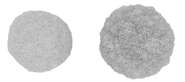 İki ağa da aynı yer değiştirme gölgelendiricisi atanmış; ancak sağdaki ağın nesne başına yüksekliği 2’dir.