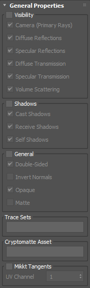Bu ayarlar, geometri nesneleri için Arnold Properties Modifier nesne değiştiricisi aracılığıyla sağlanır .