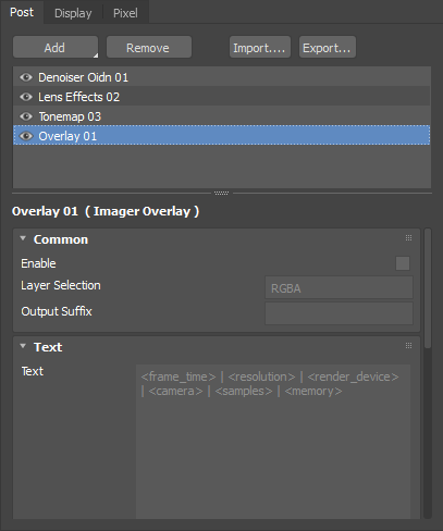 Görüntüleyici adı verilen işlem sonrası düğümler, çıktı sürücüsünden önce pikseller üzerinde işlem yapar. Görüntüleyiciler birbirine zincirlenebilir.