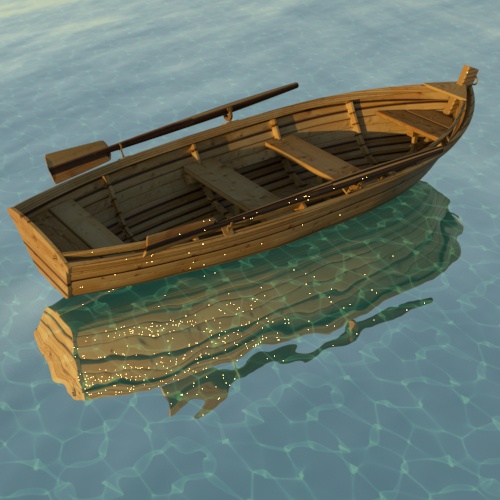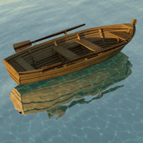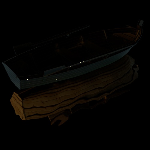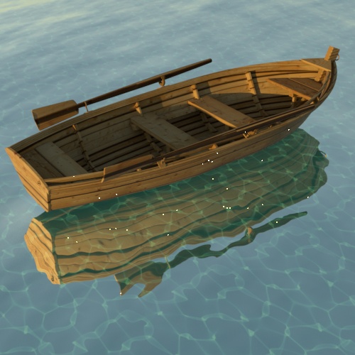 Bazı durumlarda, Yansıma Pürüzlülüğünü artırmak , daha büyük ve daha yumuşak bir yansıma vurgusu oluşturduğu için, parlamaları azaltmaya yardımcı olabilir. Tekneye atanan Standart Yüzey gölgelendiricisinin Yansıma Pürüzlülüğünü artırmak, parlamaların sayısını azaltır . Ancak, bu örnekte, bu yöntemi kullanırken hala bazı parlamalar mevcuttur.