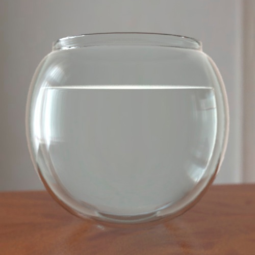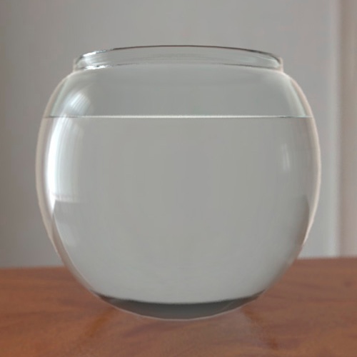 - Cam-sıvı yüzeyi (IOR 1.33), havanın sıvıya doğrudan temas ettiği alanı kaplayan ve sıvının dışına doğru yönelen normallere sahiptir.
