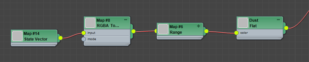 - Bir aralık gölgelendirici oluşturun ve ` state_float` gölgelendiricisinin çıktısını aralık gölgelendiricisinin girişine bağlayın . Aralık gölgelendiricisinin aşağıdaki parametrelerini değiştirin :