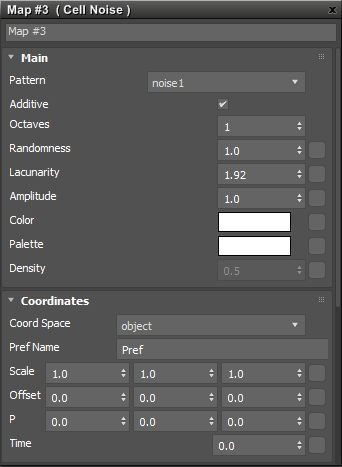 Çeşitli efektler üretmek için birçok farklı shader düğümüne girdi olarak kullanılabilen seçeneklere sahip bir hücre gürültü deseni oluşturucu. Bu, mermer, granit, deri vb. gibi birçok gerçek dünya deseni oluşturmak için kullanışlıdır.