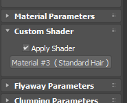 Bu, saçın yerel Arnold eğrileri olarak işlenmesine olanak tanır . Arnold (arka planda otomatik olarak) standard_hair gölgelendiricisini uygulayacak ve 3ds Max saç materyal parametrelerinin bazılarını ona eşlemeye çalışacaktır. Ancak bu oldukça zayıf bir uyum olduğundan, en iyi ihtimalle 3ds Max saçının görünümünün bir yaklaşıkını verir. Çok daha iyi bir seçenek, standard_hair gölgelendiricisini materyal düzenleyicisinde oluşturmak ve onu saç açılır menüsünde özel bir materyal olarak sürükleyip bırakarak atamaktır: