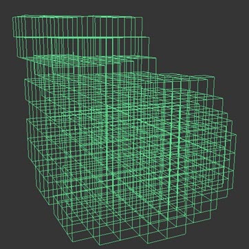 Hacmin tel kafes şeklini göstermek için dörtgenlerin kutu şeklinde gösterimi.