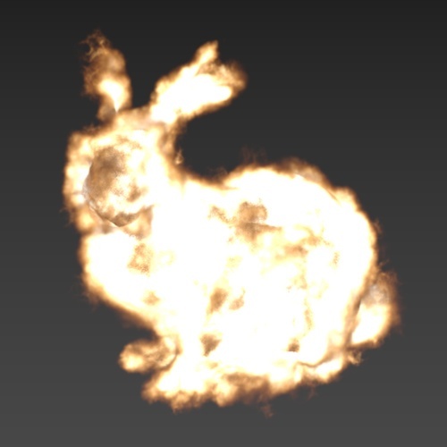 Yoğunluk, yakıt, ısı ve sıcaklık olmak üzere dört kanal/ızgara içeren VDB hacmi.