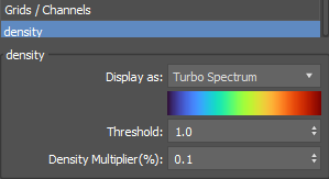 Arnold hacim nesnesi (Sis) veya seviye kümeleri (SDF (işaretli mesafe alanları)) gibi ızgaralar içeren hacim nesneleri , değiştirici yığınındaki nesnenin kullanıcı arayüzünün üstünde bir açılır menü olarak özellikleri görüntüler.