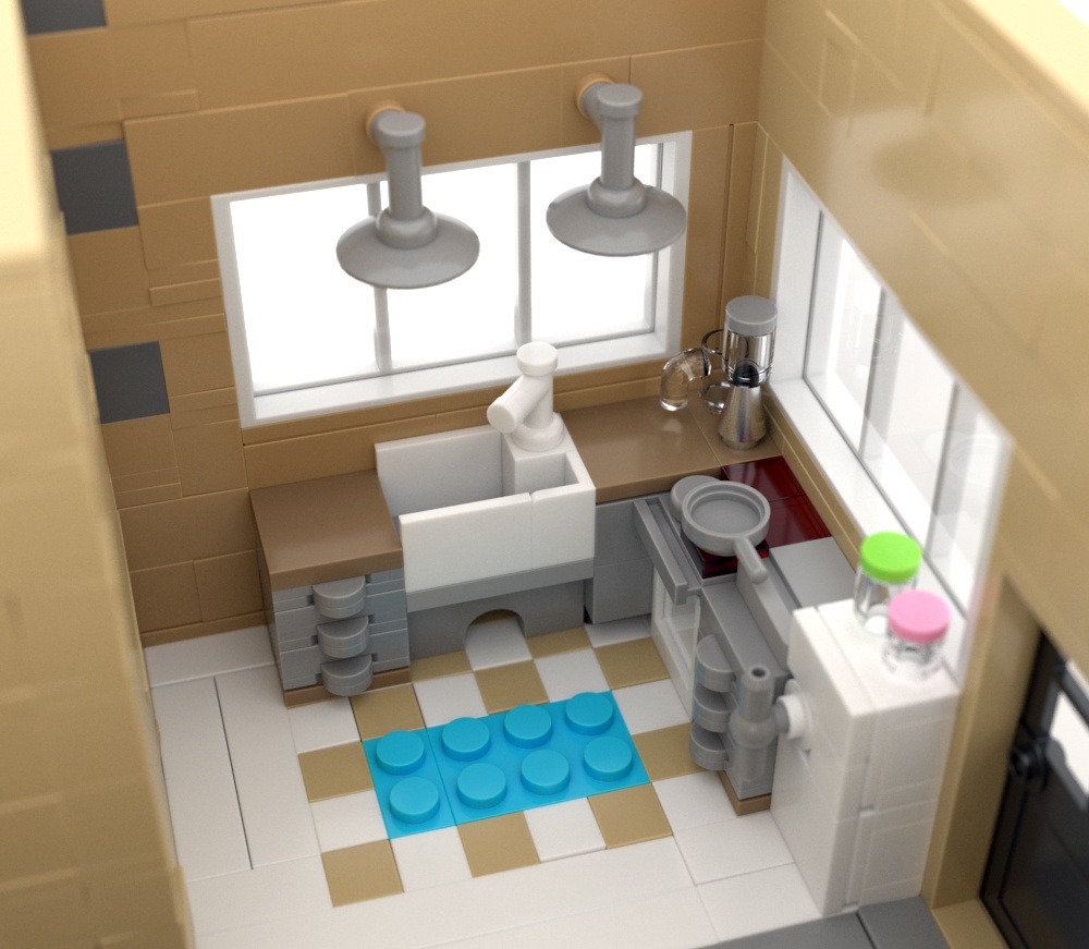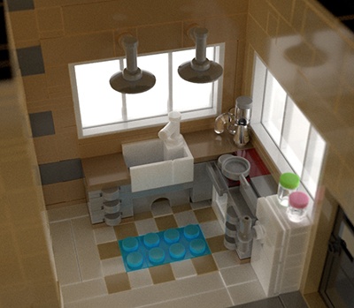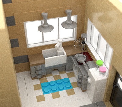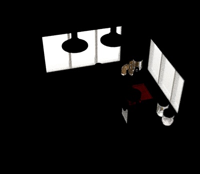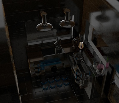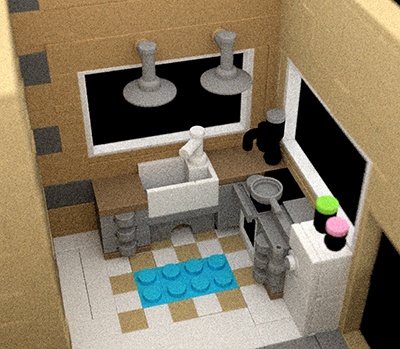 Bu sahnedeki yüksek gürültü seviyesi, düşük SSS örnek sayısından kaynaklanmaktadır (tüm tuğlalar SSS özelliğine sahiptir ). SSS örnek sayısını artırmak, bu sahnedeki gürültüyü büyük ölçüde azaltır.