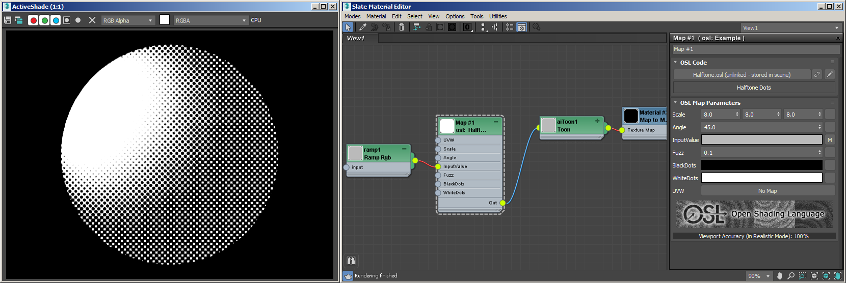 Halftone OSL shader’ı burada mevcuttur . Sahne dosyası buradan indirilebilir .