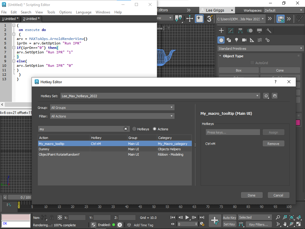 Aşağıdaki örnek, bir Max Script komutunu bir kısayol tuşuna nasıl atayacağınızı göstermektedir.