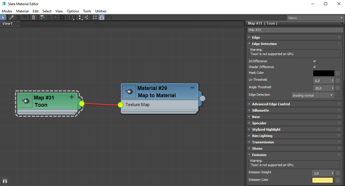 Toon -> Toon gölgelendirici parametreleriyle Malzemeye Eşle (geometriye atanmış)