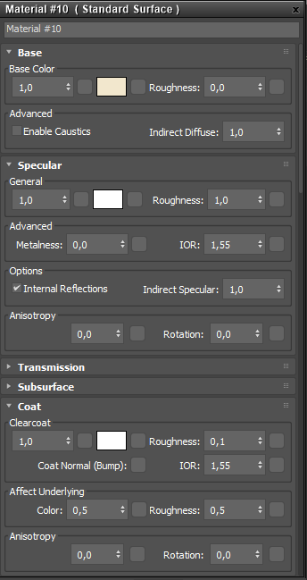 - ( Slate Editor’dan ) Standart Yüzey gölgelendiricisini atayın . Yansıma Ağırlığını 0’a düşürün (arka plandan gelen dikkat dağıtıcı yansımaların araba modelinden dikkati dağıtmasını istemiyoruz).