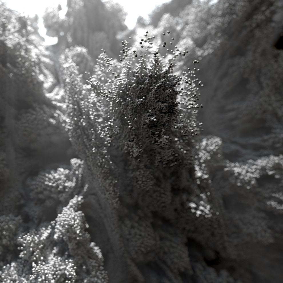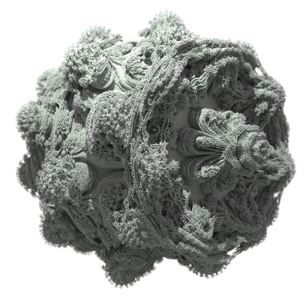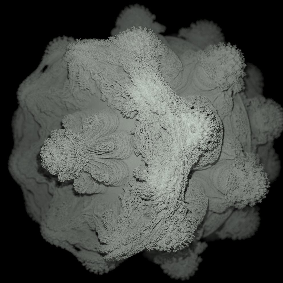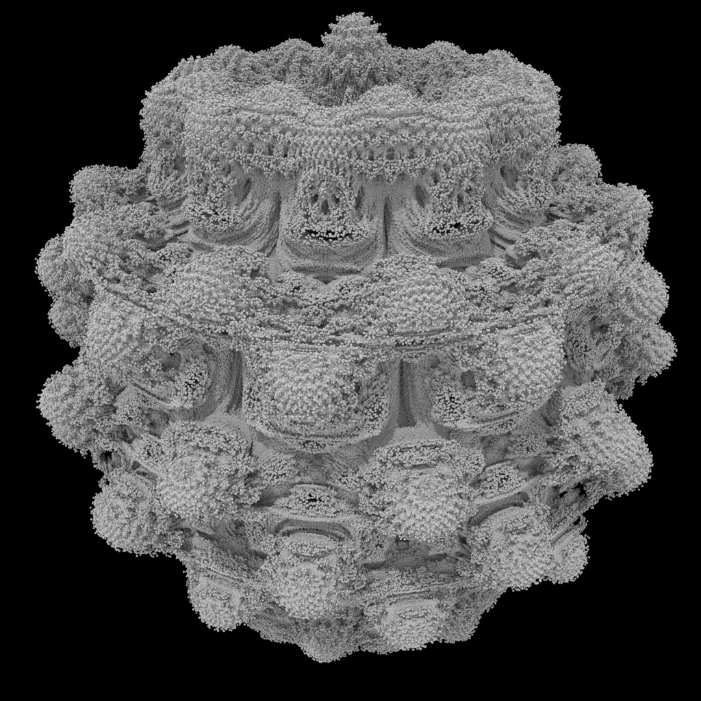 Mandelbulbun yakından görünümü. Binlerce minik küreden oluştuğunu açıkça görebilirsiniz.