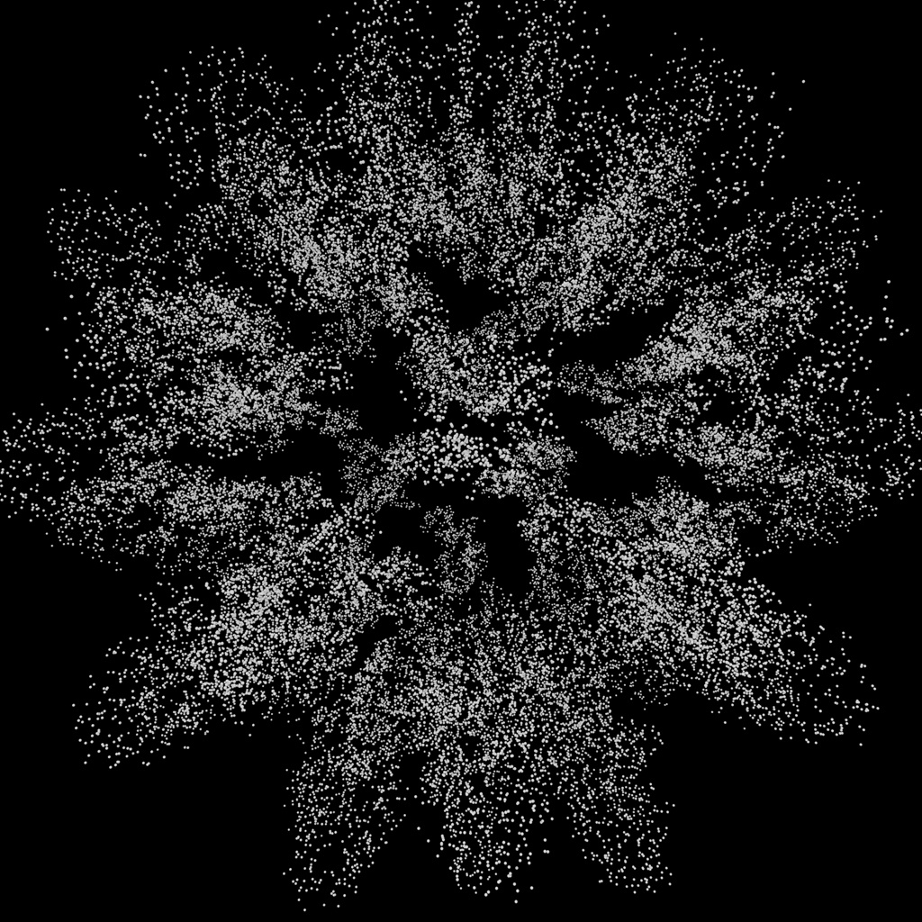 Mandelbulb bu matematiği üç boyuta genişletir. Bu jeneratör, düzenli bir ızgaradaki tüm noktaları örnekleyerek çalışır ve eğer nokta bir “tutuklu nokta” ise, onu işleme için bir AiPoints geometri düğümüne ekler.