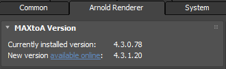 MAXtoA’nın şu anda yüklü olan sürümünü gösterir. Eğer şu anda yüklü olan sürümünüz eski ise, yeni bir sürüm önerilecektir.