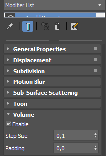 - Küreyi seçin ve Değiştirici Listesi’ndeki Arnold hacim parametrelerine gidin.
