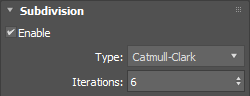 - Küre geometrisi için yeterli alt bölümleme olduğundan emin olun ; aksi takdirde, yer değiştirme doğru görünmeyecektir. Bu durumda, türü catclark olarak ayarlanmış 6 yineleme yeterlidir.