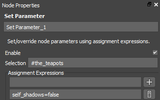 Bu kısa eğitimde , bazı çaydanlıkların ışıklarını ve kendi gölgelerini değiştirmek ve kürenin gölgelendirmesini değiştirmek için Set Parameter , Collection ve Disable operatörlerinin nasıl kullanılacağı ele alınacaktır . Sahne, üç çaydanlığa gölge düşüren iki ışık ve üzerine basit bir Utility shader atanmış bir küre içermektedir.