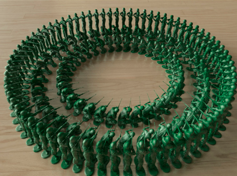 Artık prosedürel modelin iki satırına sahip olmalısınız. Aynı yöntemi kullanarak, ayakta duran asker için başka bir prosedürel model oluşturduk. Ancak, daha büyük çevreyi telafi etmek için kopya sayısı 72’ye çıkarıldı. Ayrıca, ayakta duran asker prosedürel modelinin oturan asker prosedürel modelleriyle kesiştiğine dikkat edin. Bu durumda, bunun bir önemi yok çünkü sadece silahı oturan askerlerin üzerine sarkıyor.