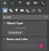- Yeni bir sahne oluşturun. Oluştur sekmesindeki menüye giderek Arnold’u seçin ve yeni bir Prosedürel sahne oluşturun . Prosedürel’i seçin ve görünüm alanında tıklayıp sürükleyerek prosedürü oluşturun.