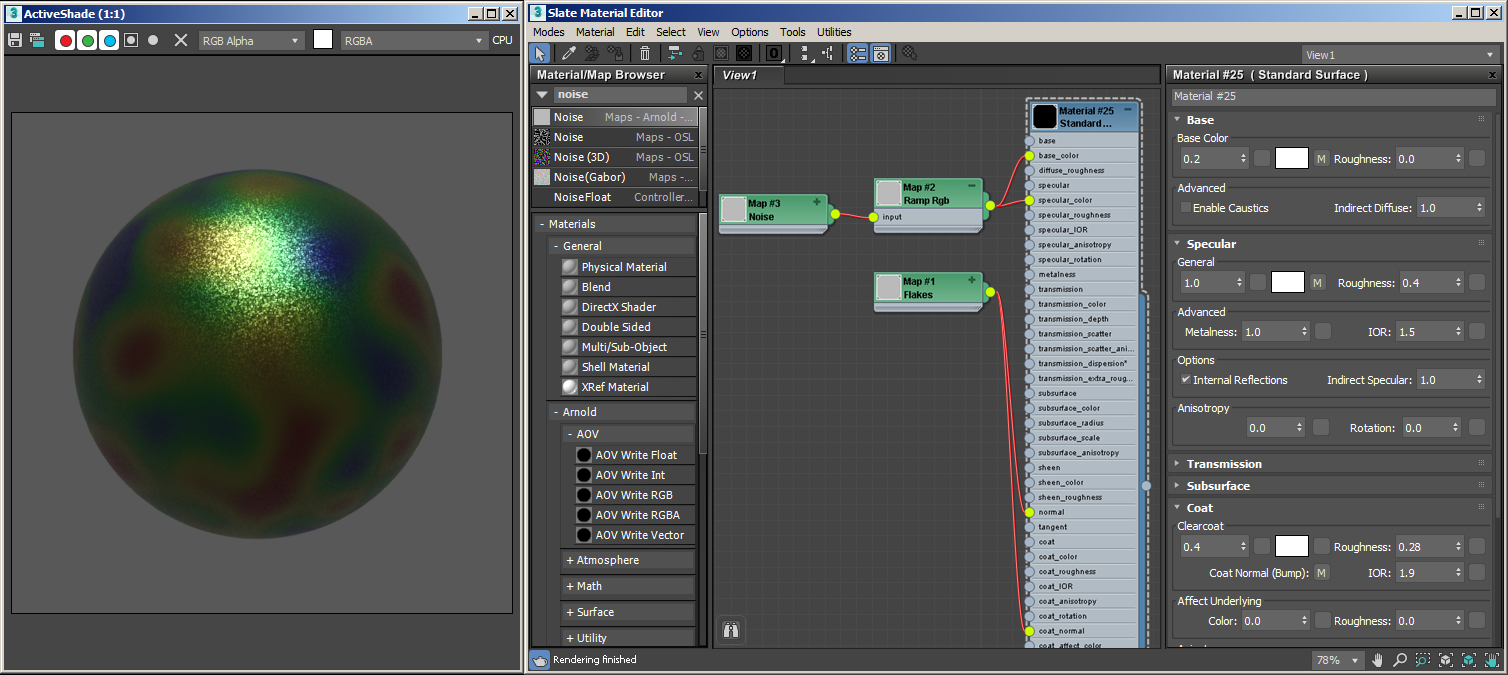 flakesdaha alt bir katmanda (Normal – * Geometri altındaki Kabartma Haritalama *) yapmamız gerekir. Bu efekt, metalik araba boyası gibi malzemelerde belirgindir.