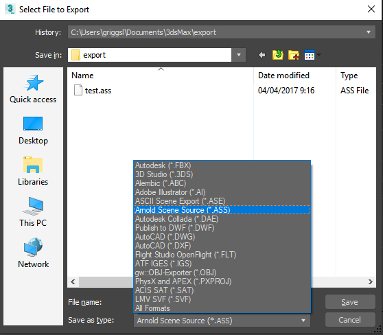 Varsayılan dışa aktarma seçeneklerini (Geometri ve Gölgelendiriciler) kullanarak Arnold Scene Source (.ass) formatına dışa aktarın.