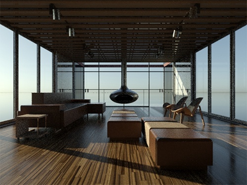 Bu değeri artırarak sahnedeki dolaylı olarak aydınlatılmış yüzeylerdeki gürültüyü giderebiliriz. Aşağıdaki örnek resimlerde, tavandaki dolaylı olarak aydınlatılmış kirişlerde bir miktar gürültü olduğunu görebiliriz. Dağılım örneklerinin sayısını artırmak bu tür gürültüyü azaltır. Bu değeri artırmanın render sürelerini artıracağını unutmayın.