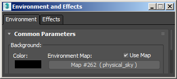 - Ortam ve Efektler penceresini (8) açın ve Fiziksel Gökyüzü gölgelendiricisini Ortam Haritası: parametre yuvasına sürükleyin.