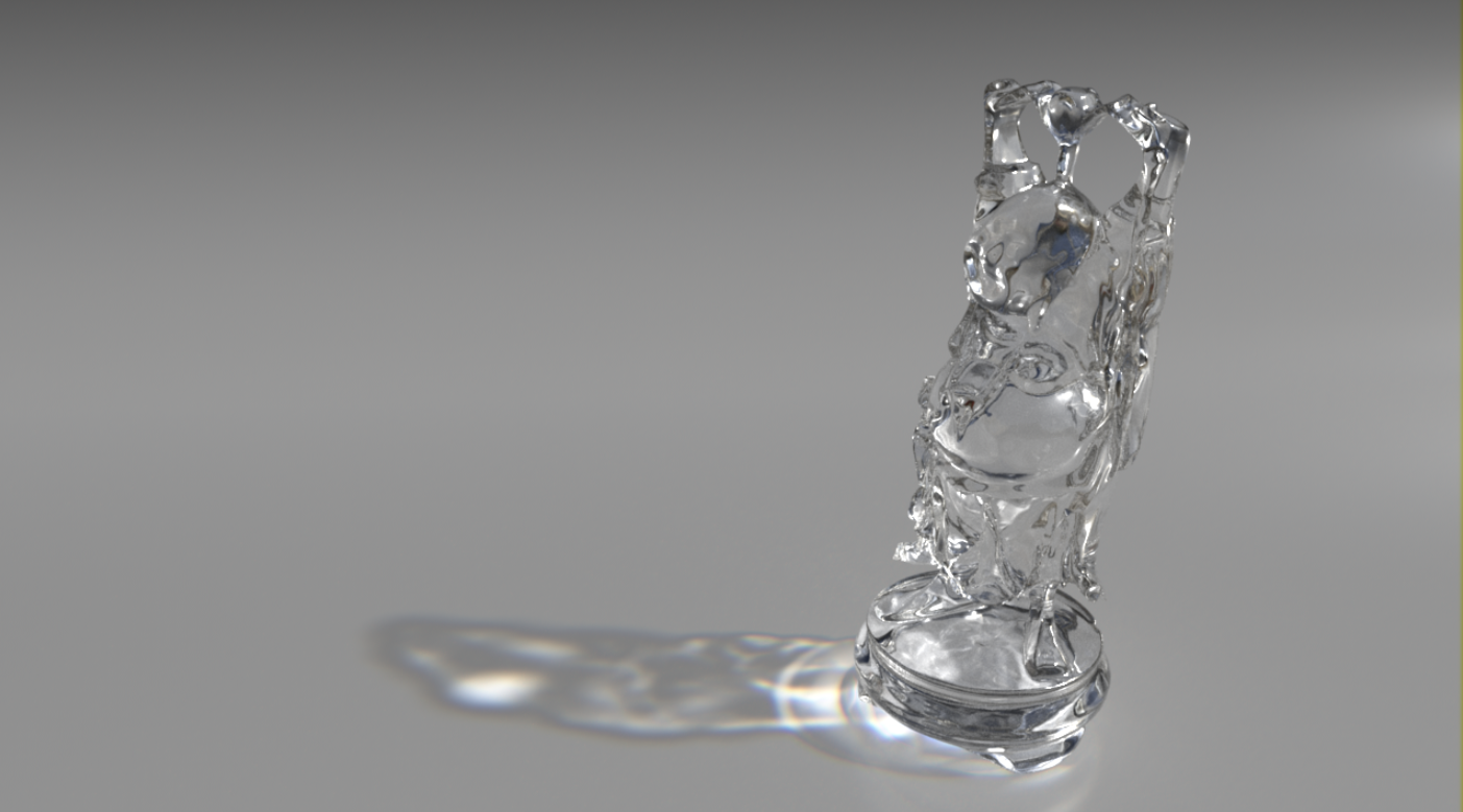 Bu ışık, cam malzemenin kendisini aydınlatmak için kullanılacaktır ve kostik efekt için gerekli değildir . Gökyüzü Kubbesi Işığı ile zemin düzlemi arasındaki ışık bağlantısını kesmeniz gerekebilir ; aksi takdirde, kostik efekt düzgün görünmeyebilir. HDRI içeren bir arka plandan aydınlatmaya ihtiyacınız varsa, ikinci bir Gökyüzü Kubbesi Işığı oluşturmayı ve cam nesneyle olan ışık bağlantısını kesmeyi deneyin.