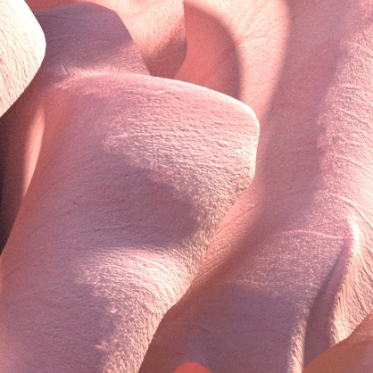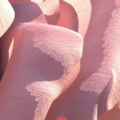 Sahneyi arkadan güçlü bir uzak ışıkla aydınlatmak , gölge sonlandırıcısında bazı bozulmalara neden oldu. shadow_terminator_fix tarafından etkinleştirilen mevcut algoritma, küre gibi dışbükey yüzeyler için iyi çalışıyor, ancak içbükey bölgelerdeki kendi kendine gölgelenmeyi düzeltemiyor. Bunun üstesinden gelmenin yolları var.