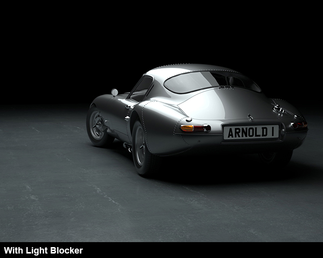 Dörtlü far sistemine bir ışık engelleyici eklemek , ışığın araç içinde nerede ve nasıl yansıdığı konusunda size daha fazla sanatsal kontrol sağlar. Aracın sağ tarafındaki aydınlatma ve yansımalar üzerindeki etkisine dikkat edin.