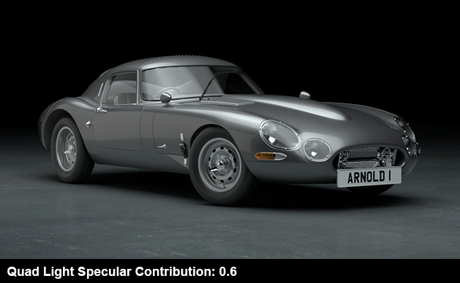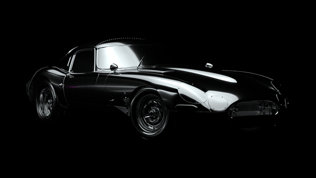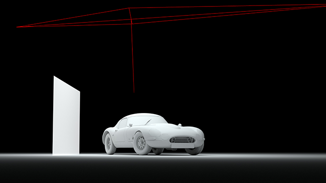 Sahne, büyük stüdyo softbox aydınlatmasını temsil eden bir Quad Light ile basitçe aydınlatılmıştır. Ayrıca, araba gövdesinin yan tarafındaki yansımaları göstermek için bir reflektör de eklenmiştir.