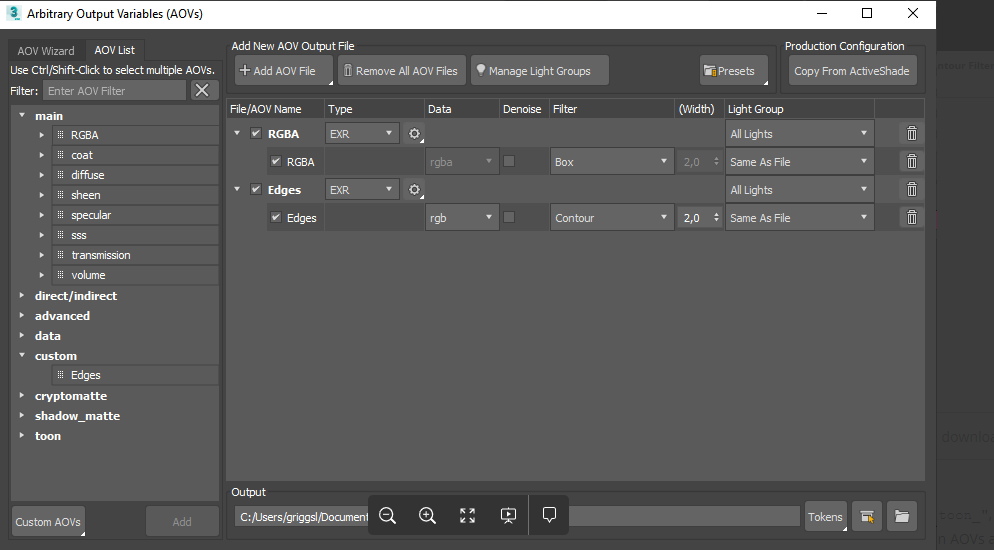 RGBA ( box_filter ) ve kenarlar özel AOV ( contour_filter )